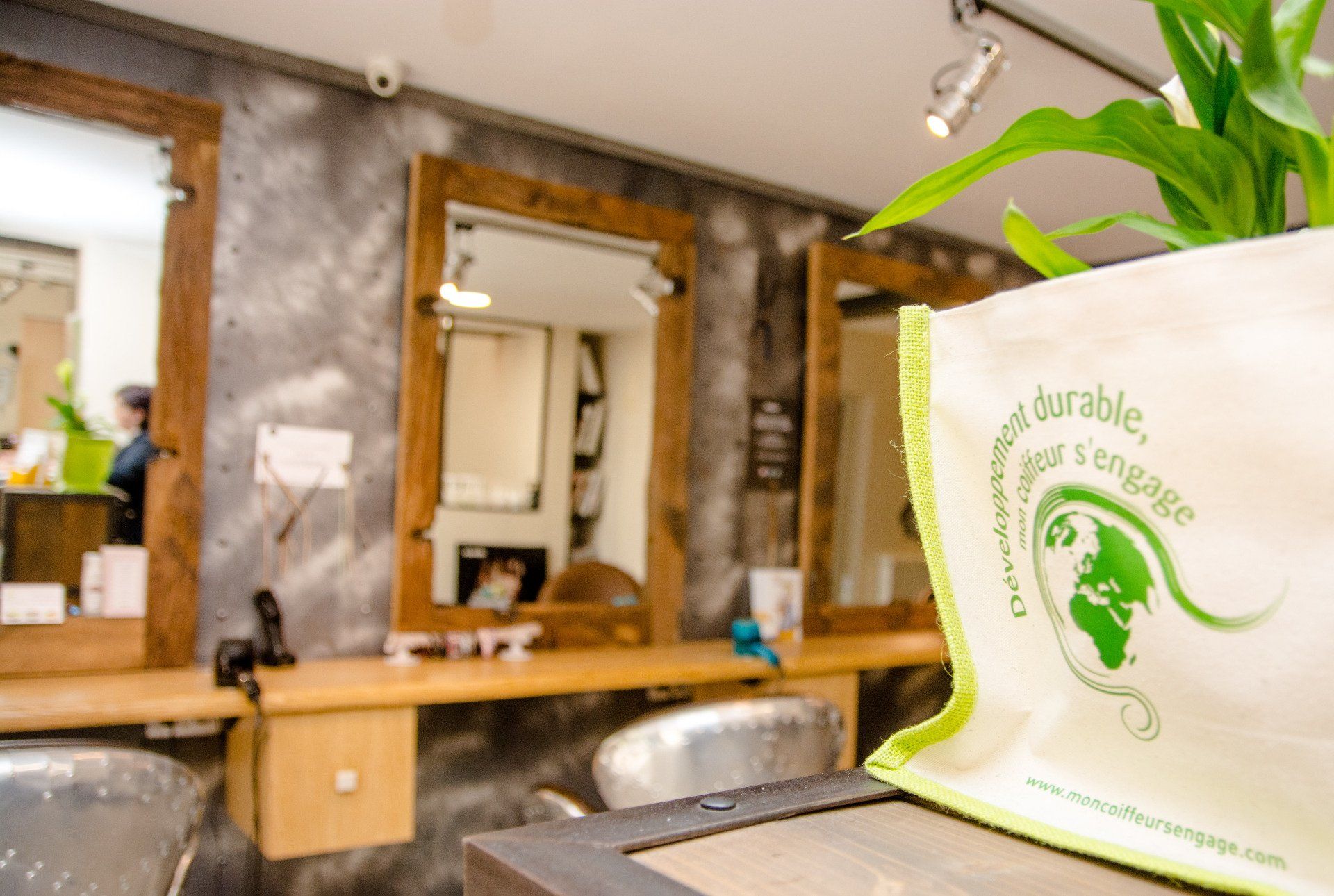 Nous sommes fiers d’adhérer à la charte de développement durable « Mon coiffeur s’engage ». Cela signifie que nous surveillons de près notre consommations d’eau et d’électricité dans l'objectif de réduire notre empreinte écologique.